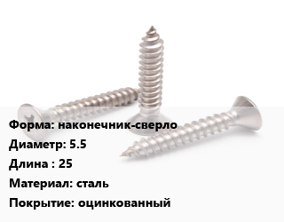 Саморез наконечник-сверло D=5.5 L=25 сталь оцинкованный