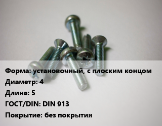 Винт установочный, с плоским концом 4х5 DIN 913 без покрытия