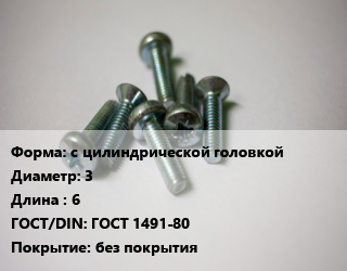 Винт с цилиндрической головкой 3х6 ГОСТ 1491-80 без покрытия
