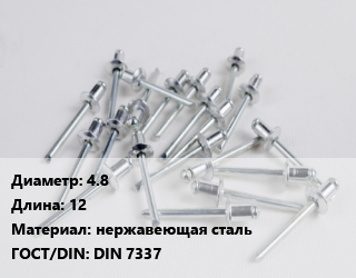 Заклепка 4.8х12 нержавеющая сталь ГОСТ: DIN 7337