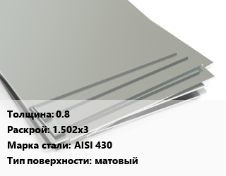 Лист нержавеющий 0.8 1.502х3 Сталь: AISI 430 Тип:матовый