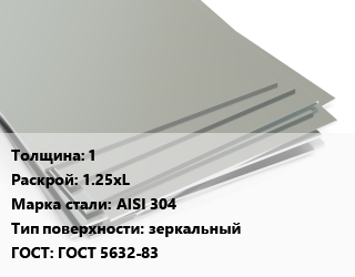 Лист нержавеющий 1 1.25хL Сталь: AISI 304 Тип:зеркальный ГОСТ 5632-83