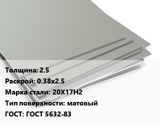 Лист нержавеющий 2.5 0.38х2.5 Сталь: 20Х17Н2 Тип:матовый ГОСТ 5632-83