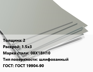Лист нержавеющий 2 1.5х3 Сталь: 08Х18Н10 Тип:шлифованный ГОСТ 19904-90